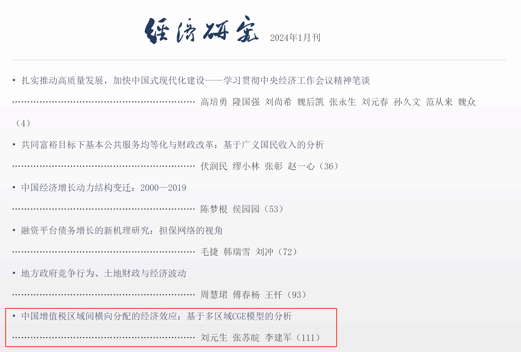 近日,我校财政税务学院2021级博士研究生张苏皖在刘元生副教授及该生导师李建军教授指导下,合作完成的论文《中国增值税区域间横向分配的经济效应:基于多区域CGE模型的分析》在《经济研究》2024年第1期刊出。