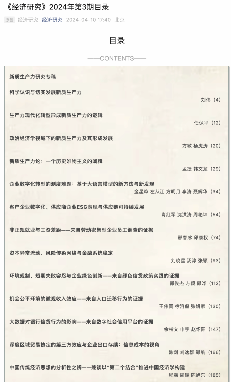我校金融学院博士生在《经济研究》发表论文
